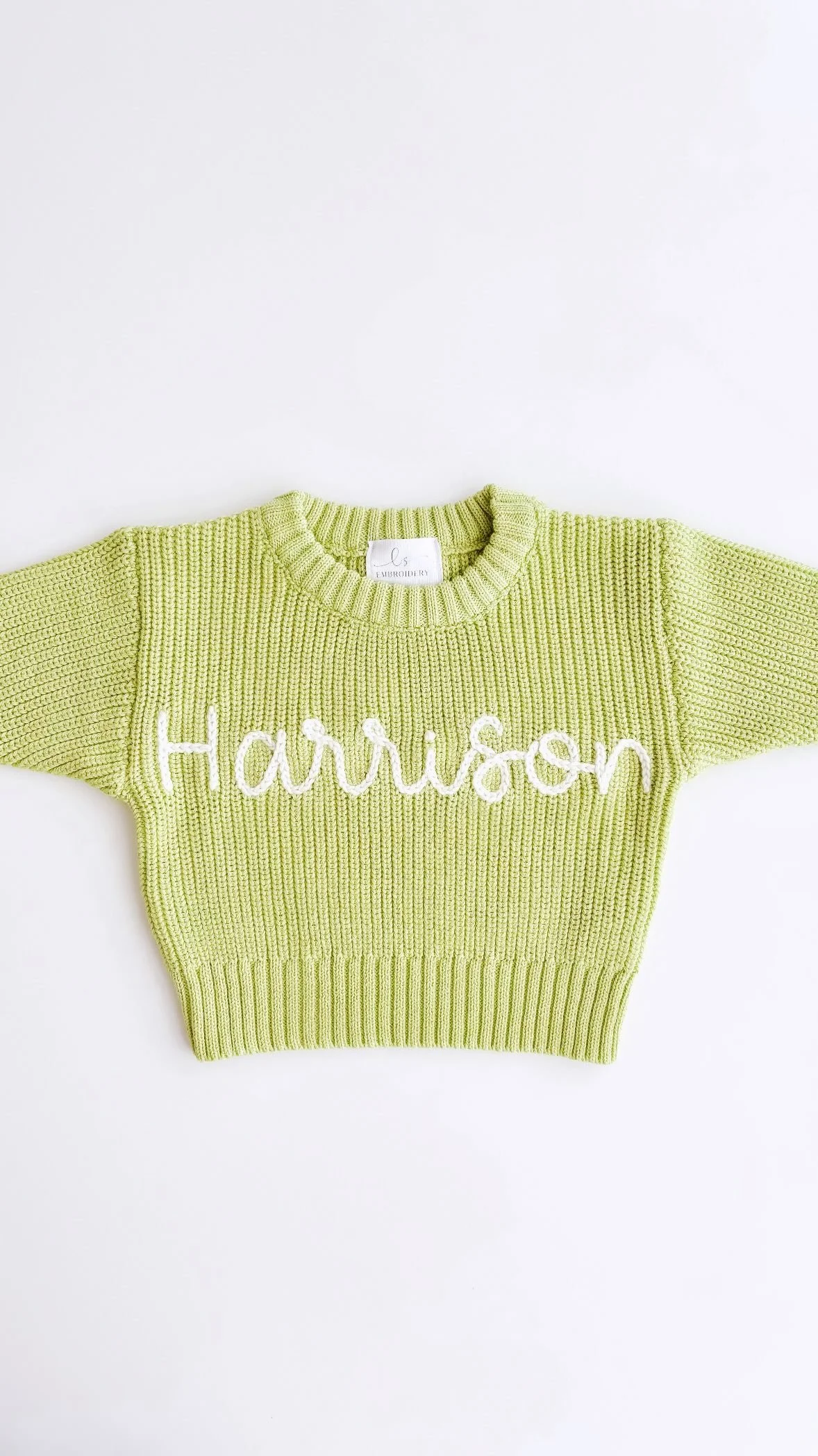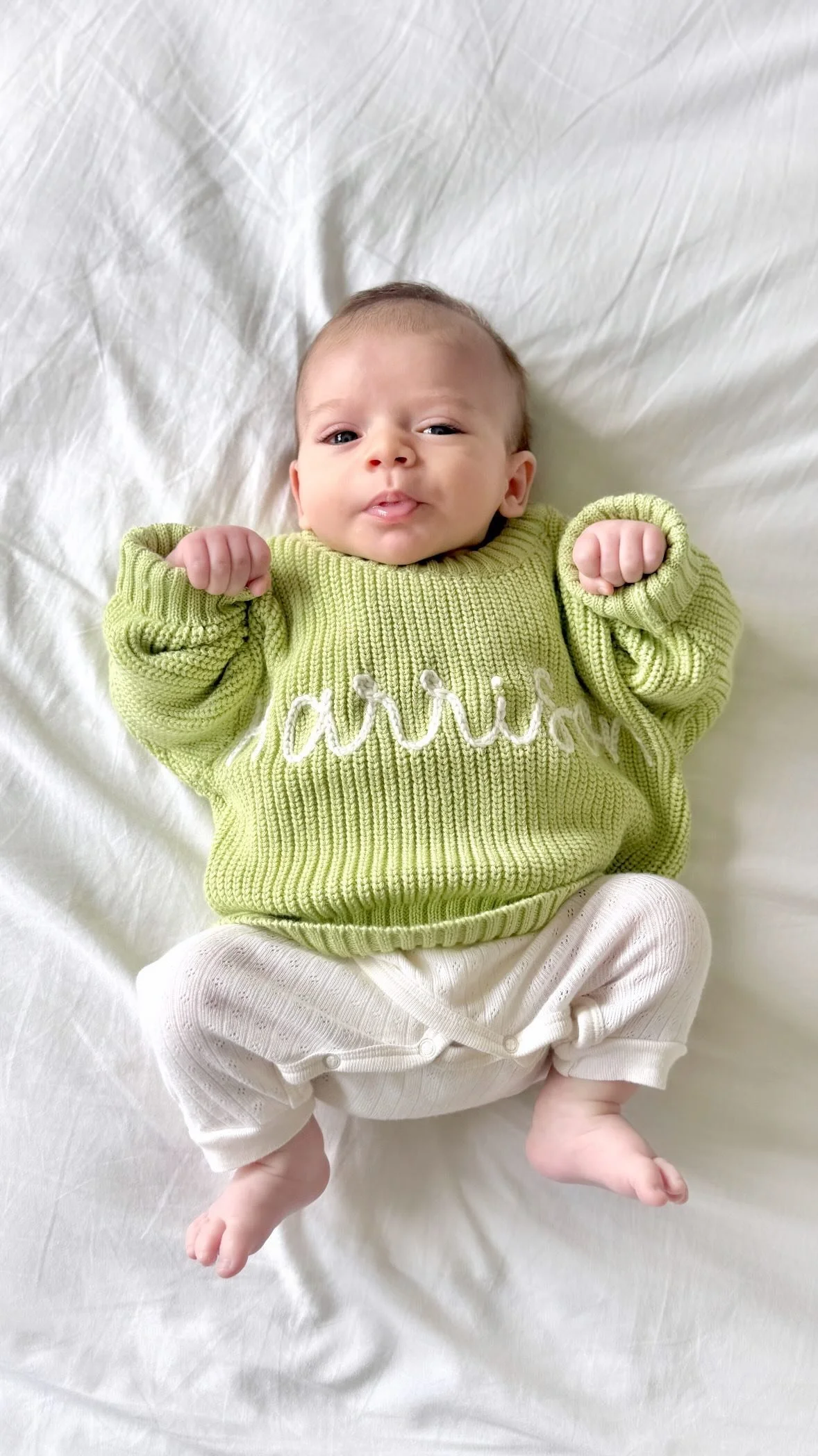 Customize your jumper and have any name or design embroidered on. Choose from 4 gorgeous coloured knits:
